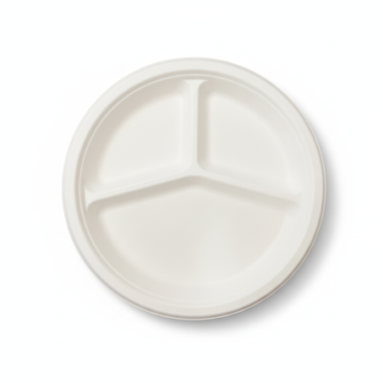 9” (23cm) 3 compartment Sugarcane Round Plate