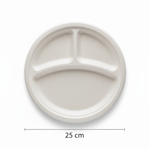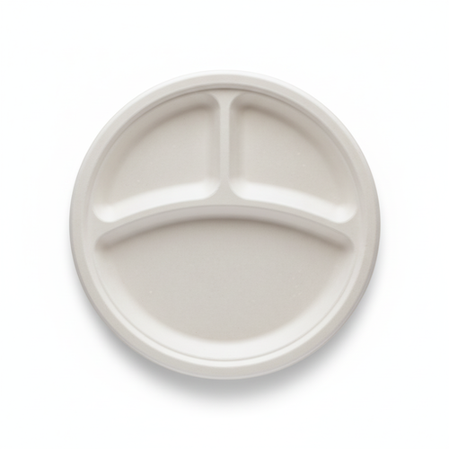 10” (25cm) 3 compartment Sugarcane Round Plate