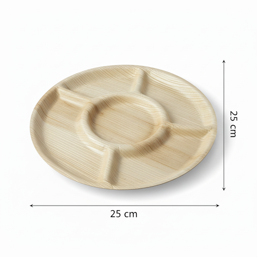 10” (25cm) 5 compartment Palm Leaves Round Plate