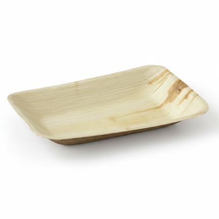 This 10” (25cm) x 6” (15cm) Palm Leaves Rectangular Tray offers a natural, sustainable solution for food service. Crafted from natural palm leaves, this single-compartment tray is disposable, naturally compostable, and eco-friendly. Ideal for catering and takeaway, it is also microwave, oven, and freezer safe.