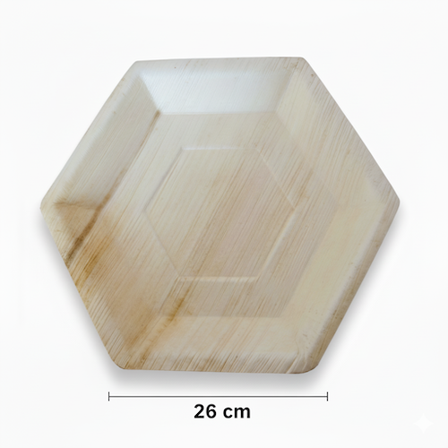 The 10” (26cm) Palm Leaves Hexagon Shaped Plate offers a stylish and sustainable dining solution. Crafted from natural palm leaves, this disposable, single-compartment plate is eco-friendly and naturally compostable. Microwave, oven, and freezer safe, it is ideal for catering and takeaway use. Available in natural, it combines practicality with environmental responsibility.