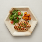 With a single-compartment layout and a length of 26cm, this plate is engineered for convenience and versatility. It is microwave safe, oven safe, and freezer safe, providing exceptional flexibility for food service professionals. Ideal for catering, events, and takeaway services, its natural colour complements any presentation. Further enhancing its utility, customisation options including Embossing, Laser Printing, and Burn Marks are available. This eco-friendly hexagon plate combines practicality with a strong commitment to sustainability.