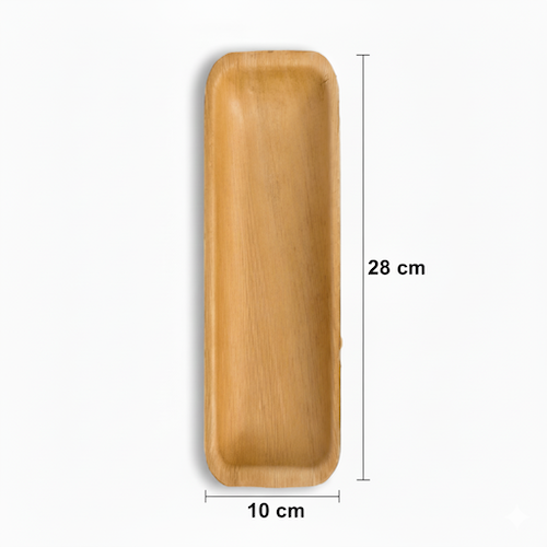 Discover the 11” (28cm) x 4”(10cm) Palm Leaves Rectangular Tray, a versatile and sustainable solution for various serving requirements. Made from natural palm leaves, this rectangular tray measures 28cm in length and 10cm in width, featuring a single compartment design. Its natural colour provides a clean, professional aesthetic for any setting.