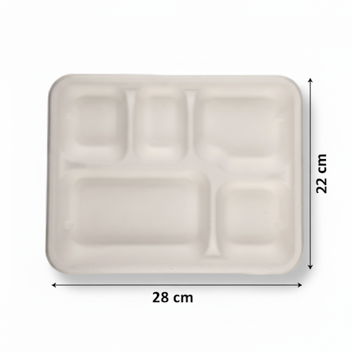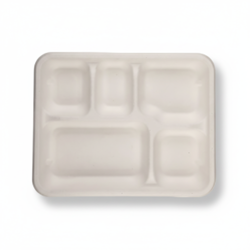 11” (28cm) x 9”(22cm) 5 compartment Sugarcane Rectangular Container with Lid