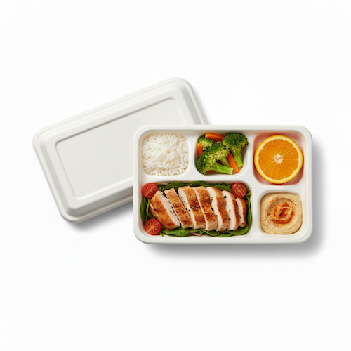 11” (28cm) x 9”(23cm) 5 compartment Sugarcane Rectangular Tray