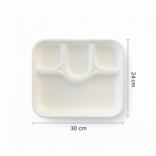 12” (30cm) x 10”(24cm) 4 compartment Sugarcane Rectangular Tray