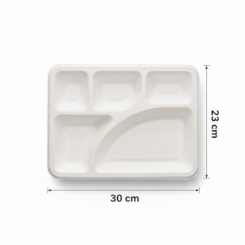 12” (30cm) x 9”(23cm) 5 compartment Sugarcane Rectangular Tray