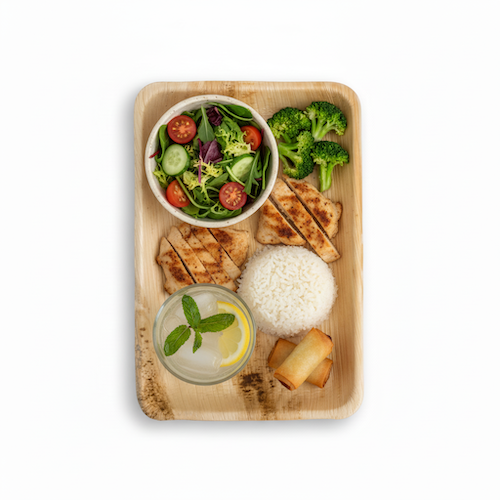 Discover the versatility and sustainability of our 14” (34cm) x 10”(25cm) Palm Leaves Rectangular Tray. Crafted from natural palm leaves, this eco-friendly and naturally compostable tray is designed for various food service applications. Its rectangular shape and single compartment make it ideal for presenting a wide array of dishes, simplifying service.