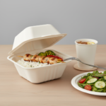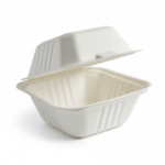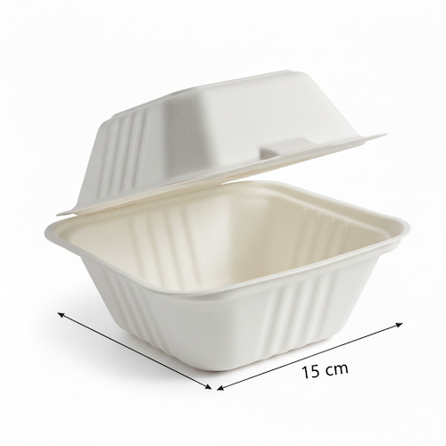 The 15oz (450ml) Sugarcane Square Clamshell presents a clean, professional packaging option. Crafted entirely from sugarcane, this square-shaped container features a single compartment and is available in white. Its precise dimensions measure 15 cm in length, 15 cm in width, and 8 cm in height, providing a contained space. With a volume capacity of 450ml, or 15 oz, it is designed to hold specific contents. Each unit weighs 29 grams, contributing to its lightweight design. This white sugarcane clamshell, with its square form and clamshell type, offers a straightforward solution for contents requiring a single, enclosed space. The clean white colour enhances its professional appearance.