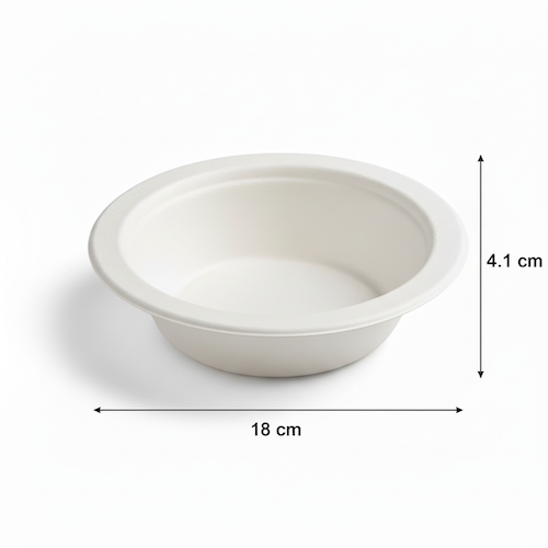 This 16oz(480ml) Sugarcane Round Bowl offers a clean, professional solution. Crafted from sugarcane, this white, single-compartment bowl measures 18cm in diameter and 4.1cm in height. With a weight of just 12 grams, it provides a lightweight option for serving various contents.