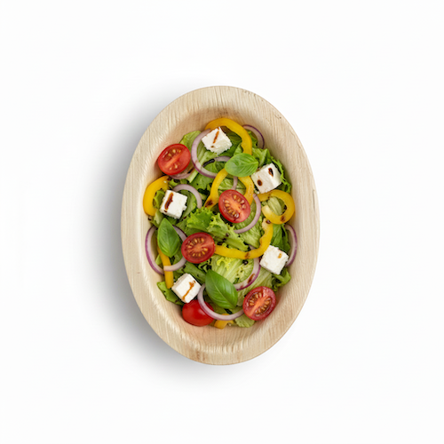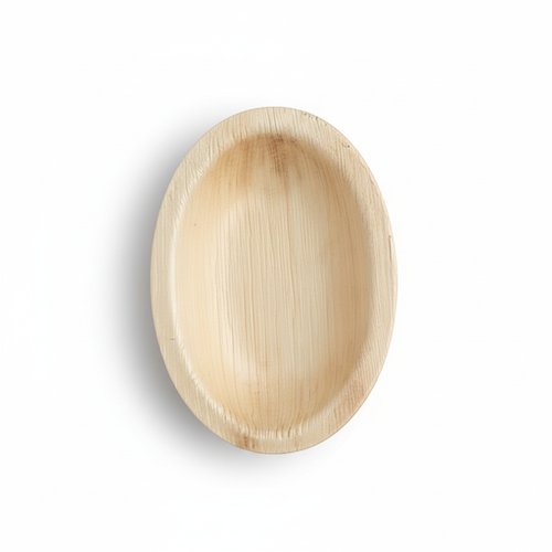 The 2” (6cm) x 2”(5cm) Palm Leaves Oval Ellipse Tray is a single-compartment solution crafted from natural palm leaves. Eco-friendly and naturally compostable, this disposable tray is ideal for catering and takeaway services. It is microwave, oven, and freezer safe, offering a versatile and sustainable option in a natural colour.