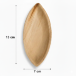 Introducing the 5” (13cm) x 3”(7cm) Palm Leaves Oval Boat Tray, a single-compartment serving solution crafted from natural palm leaves. This professional-grade tray measures 13cm in length by 7cm in width with a height of 2.5cm, presenting an elegant oval shape in a natural colour.