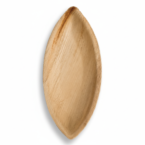 This 5” x 3” (13cm x 7cm) Oval Boat Tray is expertly crafted from natural palm leaves, featuring a single compartment. Designed for disposable use, it is ideal for catering and takeaway services, being naturally compostable and eco-friendly. It also offers broad utility as it is microwave, oven, and freezer safe.