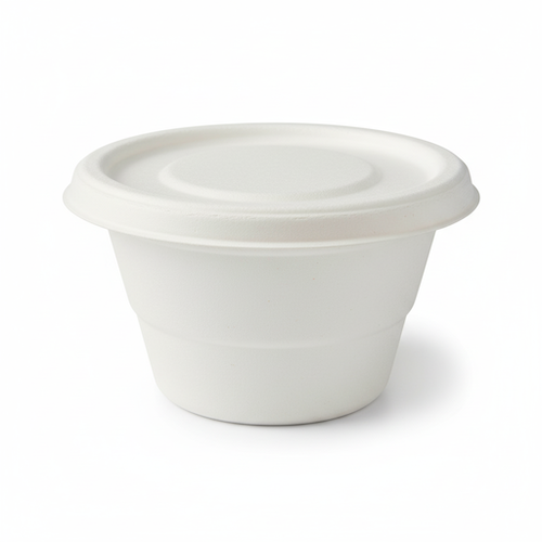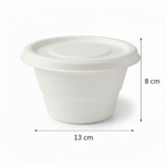 Introducing the 500ml Sugarcane Round Container, a professional and specified packaging solution. This container is expertly crafted from durable sugarcane material, presenting a clean white finish for a polished appearance. Designed with a single compartment, it offers a generous volume of 500ml, equivalent to approximately 16.7 oz, making it suitable for a variety of contents. The container features a precise round shape with clearly defined dimensions: a diameter of 13cm and a height of 8.0cm. Weighing a mere 13 grams, it provides a lightweight yet robust option for packaging needs. Its consistent white color and singular compartment ensure straightforward application, providing a reliable choice where exact specifications are paramount.