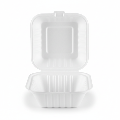 Discover the 6” Sugarcane Square Clamshell, a versatile and professionally designed container. Constructed from high-quality sugarcane material, this white, single-compartment clamshell offers a clean presentation for your products. Its square form factor, with precise dimensions of 15cm length, 15cm width, and 7.6cm height, provides ample space while maintaining a compact profile. Each unit weighs a lightweight 21 grams, ensuring ease of handling. The secure clamshell type design helps keep contents protected. Available in a classic white variant, this sugarcane container is engineered for practical everyday use. Its robust construction reflects a commitment to functional design and material choice.