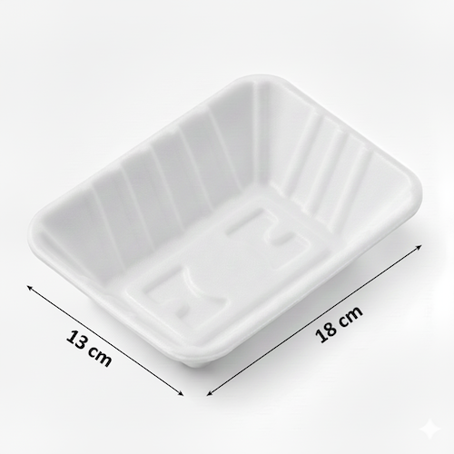The 7” (18cm) x 5”(13cm) Sugarcane Rectangular Chip Tray is crafted from sugarcane, offering a single compartment design. This white, rectangular tray measures 18cm in length, 13cm in width, and 3cm in height, providing a compact serving solution. Each tray weighs 11 grams.