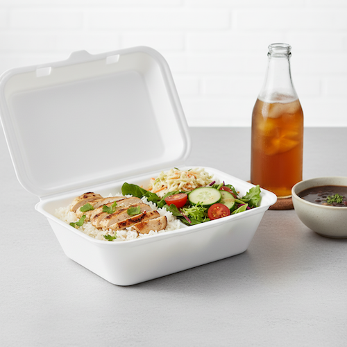 7” (18cm) x 5”(13cm) Sugarcane Rectangular Clamshell Lunchbox