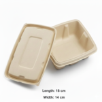 Introducing the 7” (18cm) x 6” (14cm) Sugarcane Rectangular Lid for Containers, specifically designed for 500 ml capacity containers. Crafted entirely from sugarcane, this lid provides a clean and professional covering solution. Its precise rectangular shape measures 18 cm in length and 14 cm in width, with a height of 0.8 cm, ensuring a compatible fit for various containers.