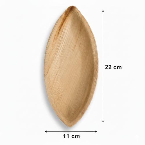 The 9” (22cm) x 4”(11cm) Palm Leaves Oval Boat Tray offers a versatile, single-compartment solution for catering and takeaway. Crafted from natural palm leaves, this 22cm L x 11cm W tray is disposable, eco-friendly, and naturally compostable. It is also microwave, oven, and freezer safe, providing practical elegance for professional use.