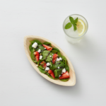 Present your culinary creations with the 9” (22cm) x 4”(11cm) Palm Leaves Oval Boat Tray. Expertly crafted from natural palm leaves, this oval tray features a single compartment, measuring 22cm in length and 11cm in width. Its clean aesthetic and natural colour make it a professional choice for a variety of settings.