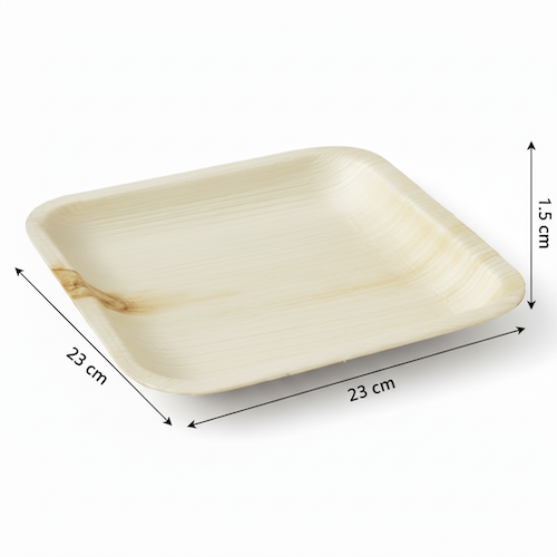 Discover the 9” (23cm) Shallow Palm Leaves Square Plate, crafted from natural, eco-friendly palm leaves. This naturally compostable plate is ideal for catering and takeaway, featuring a single compartment. It is disposable, microwave safe, oven safe, and freezer safe, measuring 23cm in length and 1.5cm in height.